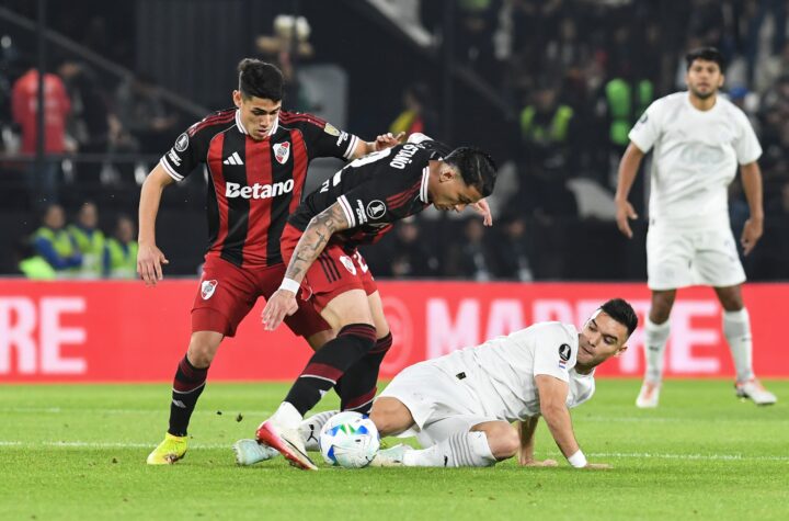 Los suplentes de River se mueven a un costado, mientras Gallardo no oculta su desagrado con lo que ve. Gestos...